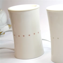 お部屋のインテリアにもなります♪アロマランプ NAL-4 ミルキーウェイアロマライト●電気式 アロマポット● 価格: 3,150円 レビュー評価: 0.0 レビュー数:0 商品サイズ:直径112mm×高さ104mm 電球10W ローズはこちら関連ワード:アロマライト その他のアロマランプはこちらAromalight Milky Way(アロマランプ ミルキーウェイ) ★アロマランプの使用方法★ 1.シェードをセットした状態でソケットプラグをコンセントに差し込みます。 ソケットプラグのスイッチをONにして電球が点灯することをご確認下さい。 2.オイルカップに水を少々(2?3ml)入れてお好きなエッセンシャルオイルを5?6滴(約0.3ml)落とします。室温が25℃前後の場合、電球の熱で水が温まり香りが立つまで約20分程かかります。早く香りを楽しむためには、水の替わり Supported by 楽天ウェブサービス |